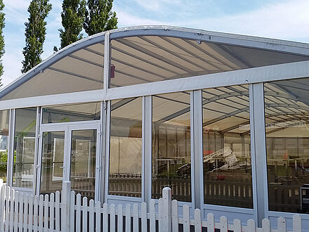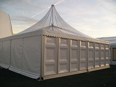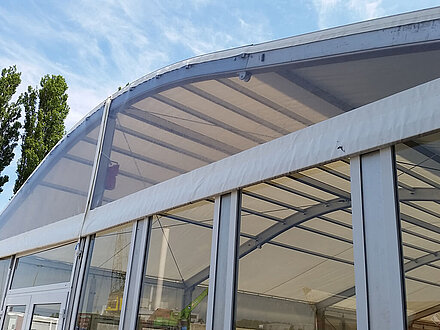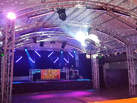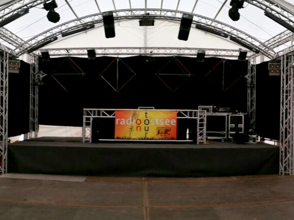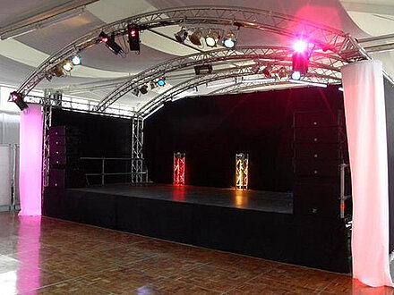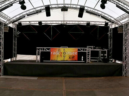 Unsere Bühnen sind flexibel und vielfältig einsetzbar, egal ob Open-Air oder Indoorveranstaltung. In die Rundbögen können Dachplanen eingezogen werden, damit die Bühne auch vor Wind und Wetter geschützt ist.
