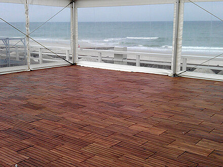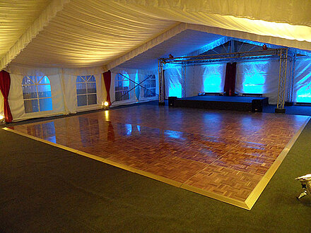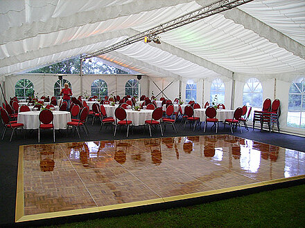 Der Parketttanzboden besteht aus 90 x 90cm Einzelplatten und ist somit variabel einsetzbar.