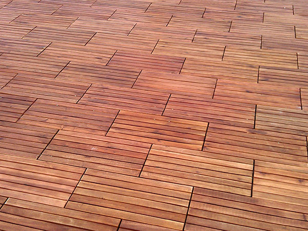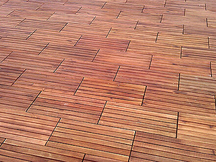 Unsere Akazien-Holzfliesen lassen sich in verschiedenen Mustern verlegen und können auch auf Pflastersteinen oder Teer verlegt werden.